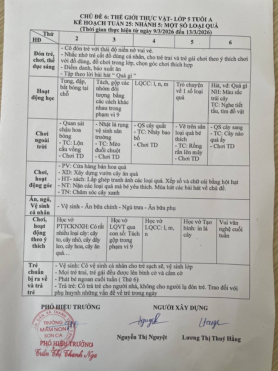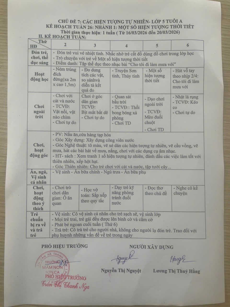 KẾ HOẠCH GIÁO DỤC TUẦN 26- NĂM HỌC 2025- 2026
